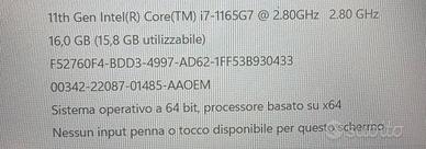 Pc portatile ancora in garanzia lenovo ideapad slim intel core I7 11 generazione, con scheda grafica IRIS X, 16 gb di ram, ssd 512 gb, sistema op a 64 bit Windows 11.