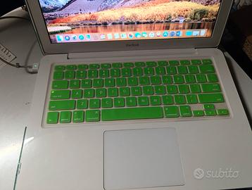 Portatile MacBook 13,3 Pollici con 8 Gb. DDR 3 SSD 240 GB. Scheda Video Nvidia GeForce 9400M con 256 Mb .Sistema operativo macOS High Sierra perfettamente funzionante guscio esterno di colore verde chiaro e copri tastiera stesso colore regalo borsa.