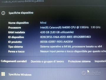 cedo Notebook Asus, per mancato utilizzo in quanto sono passato ad un altro PC.