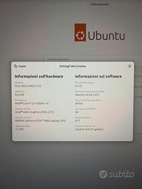 •Sistema operativo: Ubuntu 24.04.2 LTS, presente dual-boot con Windows 11 (se richiesto posso eliminare linux e lasciare solo windows).