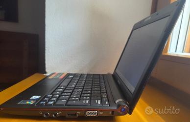 Il portatile Samsung N110 è stato upgradato da 1 GB a 2 GB e è stato sostituito il disco rigido da 500 GB (meccanico) con un disco SATA SSD di Intel da 120 GB. Dotato di batteria originale e di alimentatore originale.