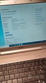 PC Sony Vaio modello come da foto perfettamente funzionante con installato Windows 10pro.