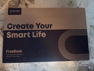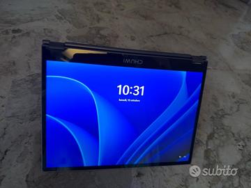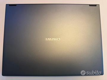 Portatile modello Freebook, marca Chuwi. Schermo 2k da 13,5”. Colore grigio. Computer con schermo touch, pieghevole a 360 gradi, in modo da diventare un tablet. Sistema Wi-Fi 6.