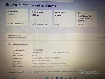 Portatile HP Pavillon dv6 Core I7 Ram 8GB SSD 250 GB completo di carica batteria. Windows 11
