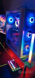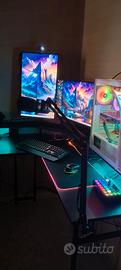 vendo come titolo postazione gaming in nuovissime condizioni nessun tipo di programma le Caratteristiche del PC sono:scheda video rtx 3060 da 12 giga processore rayzen 5,5.600 RAM 16 giga raffreddamento a liquido della freezer tastiera e mouse trust RGB tappetino RGB scrivania RGB con prese USB microfono più mixer il prezzo e di 1,800 euro