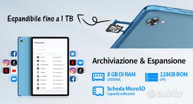 - Tablet 8GB RAM + 128GB di ROM + 1TB espandibile