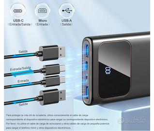 Ricarica rapida da 15 W: a differenza della maggior parte dei caricabatterie che hanno un solo ingresso USB-C, il power bank Rolosar ha 3 uscite (2 USB A + 1 USB C con max 5 V-3 A) in modo da poter caricare 3 dispositivi contemporaneamente e 2 ingressi (1 Micro USB con max 5V-2A + 1 USB C con max 5V-3A) La ricarica rapida da 3A porta il tuo iPhone fino al 76% in solo un'ora, power bank con iPhone, iPad e tutti i prossimi dispositivi USB-C.