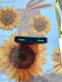 Power bank Celly 5000mAh, colore nero, con tasto accensione, con 4 led indicanti la carica, con 2 porte USB in uscita ed una porta microUSB in entrata. Usata pochissimo e tenuta sempre nella propria custodia.