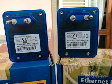 Vendo coppia di Power Line (Devoli) usati ma in ottimo stato, con scatoli propri, cd di eventuale installazione su pc, guida (no cavi). Provvisti di porta ethernet e porta usb. Porta il tuo collegamento internet in qualunque stanza della tua casa tramite rete elettrica. Prezzo delle due (2) Power Line: €. 20,00.
