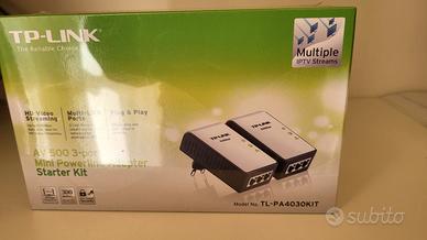 vendo 2 confezioni power line TP-Link mai utilizzate (una ancora sigillata) i modelli sono : AV500Nano TL-PA411Kit ; AV500 3-port TL-PA4030Kit