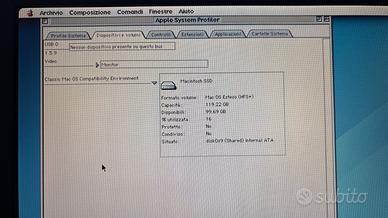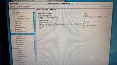 In vendita PowerBook G3 "Pismo" (M7572) con le seguenti specifiche: Processore: PowerPC G3 a 400 MHz Archiviazione: SSD da 120 GB RAM: 512 MB Connettività: Scheda Airport inclusa Lettore Ottico: Modulo DVD (funzionante) Batteria: Incluso solo l'involucro esterno (vedere foto) Su questo PowerBook è stata effettuata un'installazione pulita di Mac OS 10.4.11 TIGER e Mac OS 9.2.2, con alcune applicazioni già installate. Condizioni estetiche: Segni di usura generica da minimi a leggeri; la tastiera sembra quasi nuova, considerando l'età del dispositivo. Sono presenti graffi o scalfitture da molto leggeri a sparsi sulla parte superiore e inferiore del laptop. Accessori: Alimentatore e cavo di alimentazione originali inclusi. Note importanti: La batteria PRAM è stata rimossa e non è inclusa. Questo laptop ha 25 anni e viene venduto completamente COSI COM'È (visto e piaciuto), senza alcuna garanzia fornita o implicita. ----------------------------