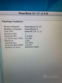 Vendo powerbook g4 1,5 ghz come da foto in buono stato perfettamente funzionante con dischi di ripristino. Batteria dura poco. Meglio usarlo con alimentatore.