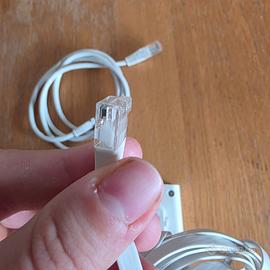 Includo due cavi ethernet cat 5e, di cui quello piatto come si vede in foto ha il gancetto rotto, significa che non rimane fisso dentro, però se non viene tirato si riesce a usare tranquillamente. Il prezzo è comunque per le powerline, i cavi sono un omaggio in quanto non mi servirebbero.