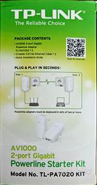 Vendo kit Powerline TP-Link modello TL-PA7020 KIT, ideale per portare internet ad alta velocità in ogni stanza della casa utilizzando l'impianto elettrico esistente, senza dover passare cavi o forare i muri.