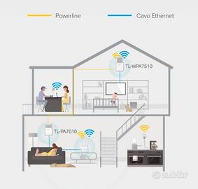 Grazie alla tecnologia Powerline, la tua rete si estende lingo la rete elettrica della tua casa, ben oltre la copertura del tuo router.