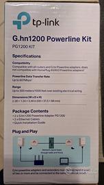 Vendo coppia di powerline tp-link modello g.hn 1200, per estendere la connettività di rete tra stanze tramite l'impianto elettrico. Massime velocità dichiarata 607 Mbps. Vendo per inutilizzo. Tutto ancora inscatolato, con 2 cavi di rete in dotazione e manuale di istruzioni. Disponibile per spedizione o consegna a mano.