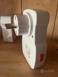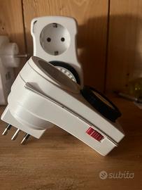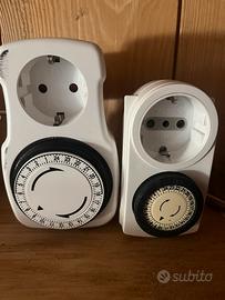 VELAMP SH001 Programmatore Timer Meccanico Giornaliero. Super Compatto. Ciclo Totale di 24 Ore in Blocchi da 30 Minuti. per prese 10/16 A. 3680W Max, Bianco e una con presa shuko 10/16 a
