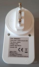 NUOVA CON SCATOLA Rendi Smart ogni dispositivo. Presa WiFi smart della serie Hom-io, grazie a questo prodotto si potrà collegare una moltitudine di dispositivi come lampade, elettrodomestici ecc e comandarli comodamente tramite smartphone o controllo vocale Amazon Alexa o Google Home. Grazie agli scenari e alle automazioni sarà possibile automatizzare quello che è connesso alla presa smart. Inoltre il tool di controllo energetico aiuterà a monitorare con precisione i consumi degli apparecchi, oltre che a comandare tramite App delle automazioni mirate. •Modello: Presa Intelligente Smart Wifi •Tensione: 100-250VAC 50/60Hz •Carico massimo: 3680W •Corrente massima: 16A •Tipologia Wireless: 2.4GHz •Protocollo: IEEE 802.11b/g/n •Dimensioni: H 10mm / W 100 mm / L 70mm •Tipo di spina: italiana •Colore bianco
