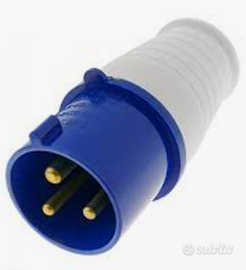 Presa industriale blu 220-240V 16A/32A, IP44/65 che è utilizzata principalmente per lavori in loco, studi e magazzini con grande classe di protezione. Applicazioni industriali e ad alta corrente.