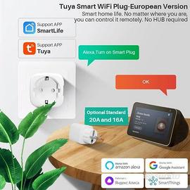 Presa Smart 16A funziona con app tuya monitoraggio dei consumi Funziona sia su ios che Android Si collega sia su Google Home Che Alexa