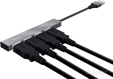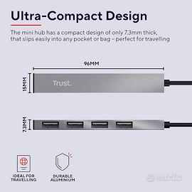 Trust Halyx Hub Mini USB 2.0 a 4 Porte in Alluminio, per PC, Laptop, Mac - Argento