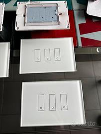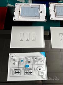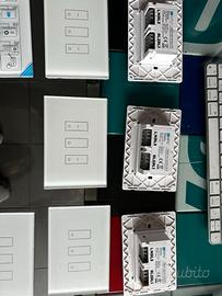 Vendo per cambio progetto: 5 placche bianche 2 interruttori basculanti per tapparelle e luce 1 interruttore per 3 luci. Vendo in blocco a 100 €
