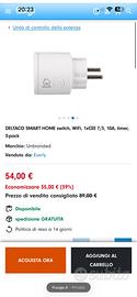 Deltaco 817002 smart home sh-p01-3p - confezione da 3 prese connesse wi-fi 2.4ghz 802.11b/g/n, colore: bianco