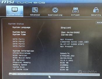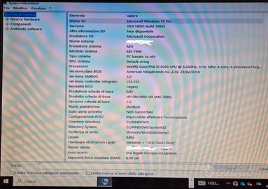 Come da titolo vendo abbinati scheda madre MSI H110M PRO-VD (MS-7996) con processore Intel i5-6500e relativo dissipatore come da foto (il processore non è supportato per win 11) come si vede da foto con window 10 pro è perfettamente funzionzionante. Invio in scatola anonima perchè l'originale non è disponibile, mando mascherino e cavo sata.