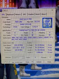 Processore intel core i5 7400 3,0 Ghz base power 3,5 Ghz turbo boost 6 Mb di cache con dissipatore stock intel socket lga 1151
