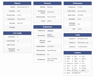 Processore Intel Core i7-5820K - 6 Core, 12 Thread