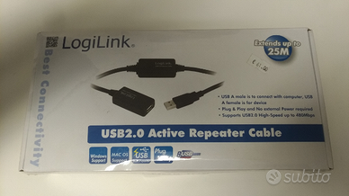 Prolunga usb 25 metri LOGILINK Alta velocità fino a 480Mbps USB 2.0 Prodotto nuovo nella confezione originale ancora integro con cellophane Compatibile Windows e MacOS