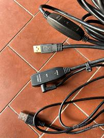 Prolunga USB 2.0, lunghezza 19 metri, alimentabile con 5V via cavetto USB laterale.