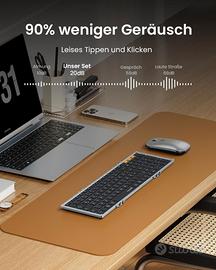 Tastiera pieghevole a grandezza naturale: la tastiera pieghevole ProtoArc con tastierino numerico a 105 tasti è dotata di 12 comode combinazioni di tasti per facilitare l'immissione e la navigazione dei dati. Il layout tedesco QWERTZ garantisce una perfetta compatibilità con i computer Windows e Mac OS, così puoi abituarti rapidamente a questa tastiera e mouse portatili e iniziare a lavorare ovunque tu vada Tastiera e mouse pieghevoli: la tastiera pieghevole XKM01 con mouse offre una connettività perfetta per un massimo di 3 dispositivi (2.4G+BT1+BT2). È possibile utilizzare il laptop, il tablet e il telefono allo stesso tempo. Facile da cambiare premendo un pulsante. Compatibile con Windows, Mac OS, Chrome OS, iPadOS, Android, ecc Borsa da trasporto per il lavoro: il supporto pieghevole in dotazione offre spazio per tutti gli iPad, iPhone e tablet da 4-11". Elegante custodia protegge il set di mini tastiera e mouse senza occupare troppo spazio nello zaino. Perfetto per viaggi e uso aziendale Tastiera e mouse ricaricabili: grazie alla batteria integrata, sia la tastiera wireless che il mouse wireless possono essere caricati tramite il cavo di tipo C incluso. La funzione di spegnimento automatico consente di risparmiare la batteria se non si utilizza la tastiera e il mouse per alcuni minuti. Il tempo di standby della tastiera è di 150 giorni e il mouse è di 200 giorni Mouse e tastiera wireless silenziosi: la tastiera Bluetooth pieghevole ProtoArc dispone di interruttori a forbice silenziosi e tasti piatti. Mouse Bluetooth silenzioso con 3 livelli DPI regolabili (1000-1600-2400) soddisfa le vostre esigenze individuali e garantisce un clic delicato e preciso.