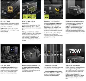 CERTIFICATO 80 PLUS GOLD – Alimentatore efficiente riduce consumo energetico e carico termico. La certificazione 80 PLUS Gold (fino al 95%) è ideale per l'hardware ad alto consumo energetico (p.e. schede grafiche di fascia alta o giochi impegnativi)