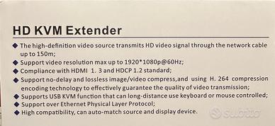 Vendesi Extender Video (max 1080p) HDMI USB per trasmissione dei segnali su cavi Cat5e / 6 / 7 e fino a 150 m di distanza.