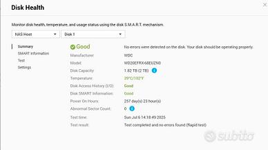 Vendo QNAP TS-231P NAS (Network Attached Storage) in ottime condizioni, completo di 2 dischi Western Digital Red WD20EFRX da 2 TB ciascuno – totali 4 TB di storage.