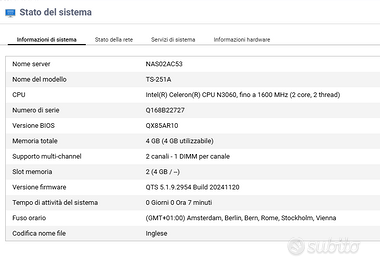 Vendo causa inutilizzo questo server qnap con doppio alloggio , 2 x 3.5” o 2.5” SATA o SSD - Attenzione HD non compresi.