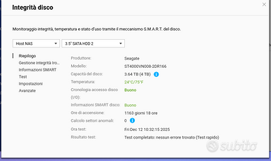 Hard Disk: 2 x Seagate NAS da 4 TB l’uno (in ottimo stato e perfettamente funzionanti)