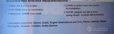 Quark XPress 6.0 per MAC versione passport edition versione multiulingua incluso Italiano. Licenza completa NUOVO sigillato, software di Desktop Publishing e impaginazione e grafica (DTP). Prezzo 150 € + spese di spedizione.