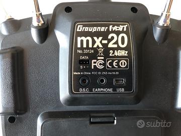 Radiocomando Graupner HOTT MX-20 2.4 ghz + ricevente Graupner HOTT GR-24 2.4 ghz. Radio usata pochissimo con drone mikrocopter da 8 motori. Praticamente nuova. Non ho la scatola del radiocomando.