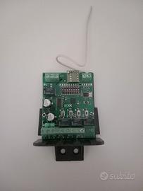 Ricevitore 4 canali con autoapprendimento, gestione codici standard da 12 a 80 bit e rolling code HCS oppure rolling code EB, alimentazione 12/24Vdc, completo di 2 telecomandi a 4 canali già programmati, oggetto nuovo provato solo a banco una volta.