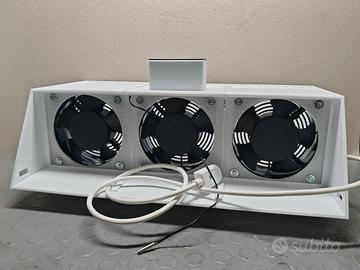 Composto da 3 ventole a 220v da 2700/3000 giri minuto, con termostato digitale con sonda per impostare l attivazione di preferenza, cavo con spina lungo 1 mt.