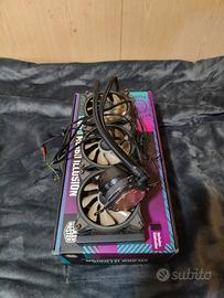 Raffreddamento liquido ML360 Illusion cooler master usato 6 mesi perfettamente funzionante e blocco CPU perfetto come di vede dalle immagini. Vanno soli pulite le ventole e radiatore con un po' di aria.