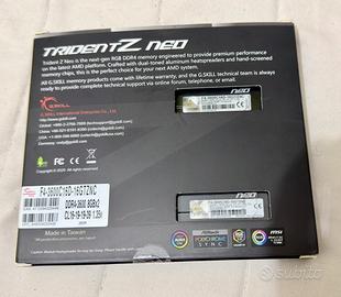 Vendo 2 banchi di RAM G.Skill Trident Z F4-3600C16D-16GTZNC - Memoria da 16 GB, 2 da 8 GB DDR4 3600 MHz. Latenza CL16. Con led RGB. Pari al nuovo. Possibilità di spedizione (SOLO in ITA) con costi e metodi da concordare con pagamento PayPal. Possibilità di scambio a mano, con pagamento in contanti.