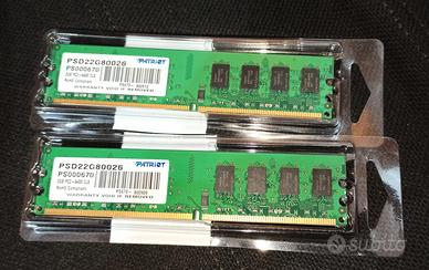 Coppia Ram 2 x 2gb Patriot ddr2 800 MHz pc2 6400 c6 psd22g80026 in condizioni pari al nuovo