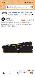 ram 2x8 in totale 16 GB ddr4, 3600 mhz. perfettamente utilizzabili nell ambito ufficio/gaming. ( sono ancora nel computer perché li devo utilizzare fino alla vendita, per permettere al computer di funzionare ovviamente). se qualcuno è interessato basta che li levo e Ve li vendo. Mi sono trovato molto bene con queste RAM, ma vorrei fare un upgrade del PC quindi li devo vendere. le RAM le ho acquistate su Amazon però le mie sono migliori di quelle in vendita ora perché dal prodotto di Amazon sono 3,200 mhz e le mie 3,600 mhz e uguali alle mie non ne vendono più. le fanno con MHz minori.