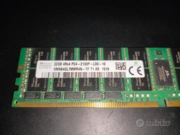Vendo banchi di Ram, 32GB ognuno, generazione DDR4, . Sono del tipo ECC Registered, verificate la compatibilità con il vostro server o comunque scheda madre/cpu. SK Hynix HMA84GL7MMR4N-TF T1 AB 1519 32GB 4Rx4 PC4 - 2133P-LD0-10 Disponibili 9 pezzi, in vendita anche su altri marketplace.