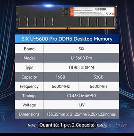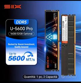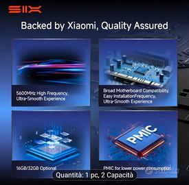 64gb Ram (2x32gb) ddr5 5600mhz cl. 46-46-90 UDIMM marca Six (Xiaomi) modello U-5600 pro