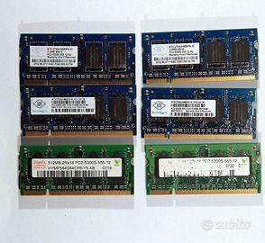 Vendo 6 moduli SODIMM ddr2 667MHz 512MB cad.