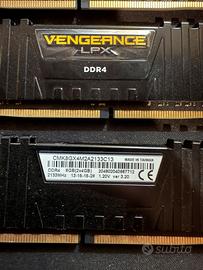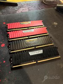 Vendo kit di RAM Corsair DDR4 composto da 4 moduli da 4GB ciascuno (totale 16GB), frequenza 2133MHz, tensione 1.20V, versione 3.20.